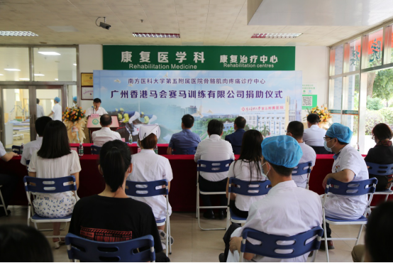7月1日,五附院举行广州香港马会赛马训练有限公司捐助仪式,标志着五附院运动康复中心正式启用。从化区慈善会社工中心主任、区慈善会秘书长钟焕清,广州香港马会赛马训练有限公司总经理陈培才,五附院党委书记李绍波、院长邹小明等参加了活动。仪式由副院长钱毅主持。