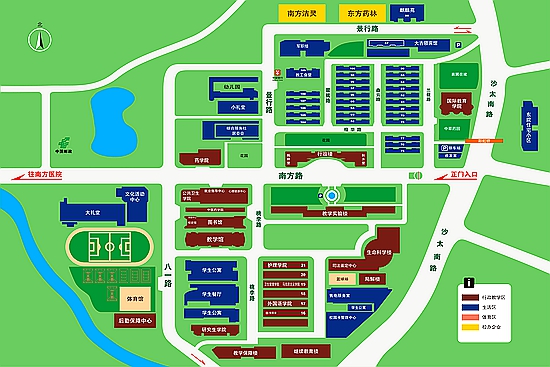 此为学校三条主要道路。“八一”指代学校过去军校历史;“南方”指代学校移交地方后的现在;“景行”喻立德树人,亦喻学校未来一路锦绣。