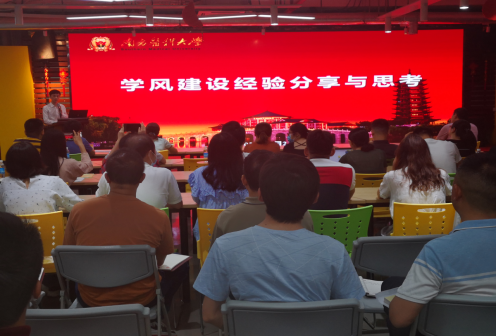 会上,张广清作《加强学风建设情况及对策思考》主题发言,指出学风建设是促进学生健康成长、增强大学德育实效、提高髙等教育质量、优化当前社会风气的需要。她介绍了学院学风建设的十个经验做法,并围绕现阶段校院两级、学生层面存在的薄弱环节,提出下一步要从“提升教学质量、增强榜样示范、加强检查督导、严肃考风考纪、做好考研支持、加强生涯规划指导”等方面提高工作实效。