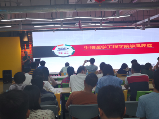 生物医学工程学院学工办主任谢耿从构建学风建设长效机制、营造浓厚学习氛围、问题与思考三个方面阐述了学风建设的经验做法和思考的问题,强调学风建设非一日之功,须有长远考虑、长效机制作支撑,以实际问题为思考,探索有效的应对方法和举措。