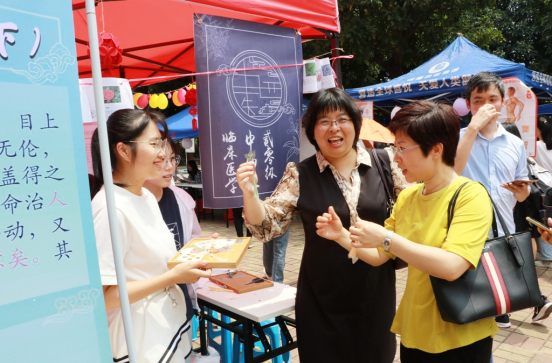 其中,中医专业以答题、绘画等形式,带大家深入了解中草药知识,纵览中医发展史,文化底蕴与人文气息无不厚重;针灸推拿专业以穴位为主题,设置重重关卡,让参与者在游戏中亲身领略经络腧穴的神秘与奇妙;中药专业立足专业特色,在与参与同学的互动中让枯燥无味的方歌生动鲜活起来,让更多人主动探索中草药这一绮丽瑰宝。更有中医药文化社等社团参与,品中医之韵,醉中药之淳,为这条文化长街铺陈渲染古韵古色。