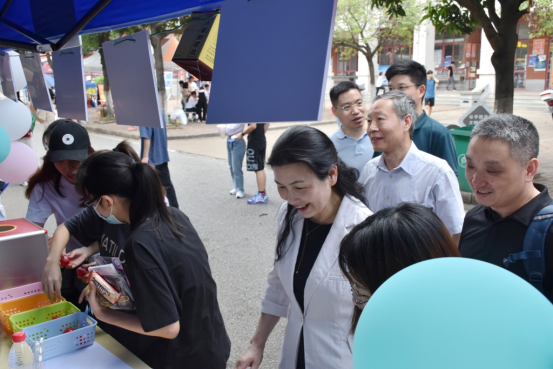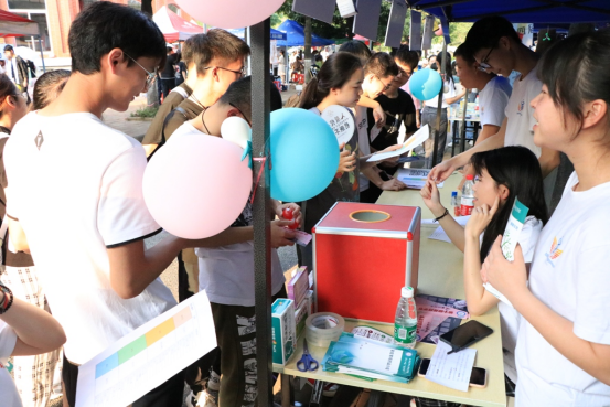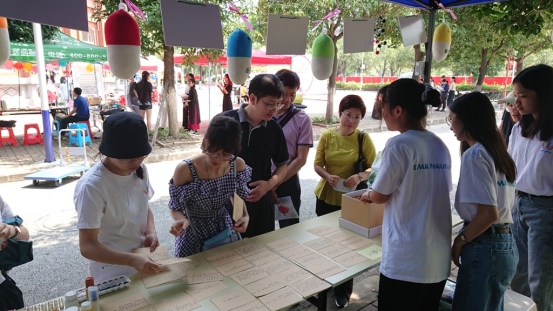 药学文化一条街“药”味十足,同学们设计了常用药品介绍册和宣传卡片,为大家科普药物的功效和服用方式。通过药品展示、“我是小药师”药物知识问答和“你画我猜”药学趣味游戏等形式,悉数呈现药学专业特色,打造一个全面而多彩的“药学集市”。药学院还与广州国盈医药有限公司合作共设“旧药回收”摊位,回收过期药品,普及安全用药知识。此外,药学文化一条街设党史学习和礼仪学习窗口,让大家在感受浓浓“药味”的同时亦不忘学百年党史,做有礼南医人。