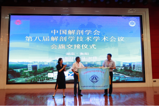 第九届中国解剖技术学术会议将于2023年在广州召开,由南方医科大学承办。基础医学院副院长吴砂代表南方医科大学接过全国解剖学技术学会议会旗,热烈祝贺第八届中国解剖技术学术会议取得圆满成功,并承诺全力做好第九届会议的准备工作。