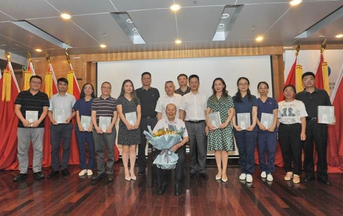 会后,钟世镇院士向全体院领导、教职工代表赠予了书籍《配角人生》,钟院士97岁生日将至,分管医疗工作的徐淑兰副院长代表医疗工作者向钟院士献花并表达了诚挚的感谢与祝福。