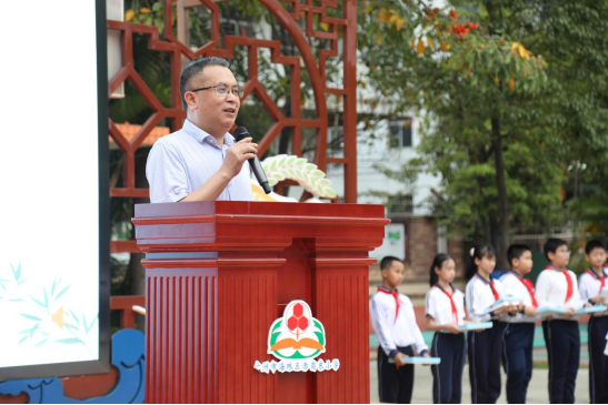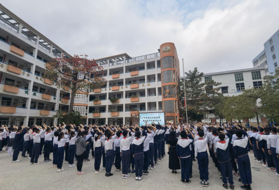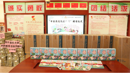 赠书活动中,赤岗东小学孩子们还进行了升国旗仪式、班集体诗朗诵《春》等表演,中西医结合医院还为学校送去9台空气净化器,助力师生们做好新冠防控。