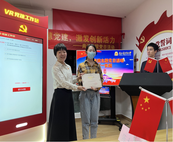 4月7日,尚进书院开展新建党团活动室启动仪式暨“走进智慧党建,激发创新活力”主题党日活动,学校党委副书记、纪委书记吴育莲,党委学生工作部部长陈士良,校团委书记、党委学生工作部副部长闫晓倩,尚进书院执行院长游文玮共同为尚进书院新配置的VR党建工作站揭幕,宣布书院党团活动室的正式启用,同时也为系列活动拉开了序幕。