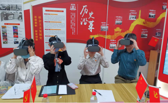 随后,进行了“习近平总书记给中国冰雪健儿的回信”第一议题学习,激励青年学子逐梦青春,拼搏奋斗,创造精彩人生。同时,结合VR党建沉浸式体验,带领青年学子通过VR立体设备“亲临”焦裕禄纪念馆参观,深入了解焦裕禄的事迹,探索体会伟大的“焦裕禄精神”,分享个人的学习心得与感悟,并组织预备党员在党旗下宣誓。