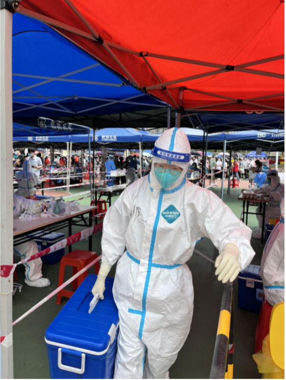 3月12日到4月12日,牙周党支部书记孟文霞从深圳战场转战广州战场,她表示:作为一名党员,深感体会的是支援核酸检测不仅仅是一个任务,更是一份责任与担当。一次次的披星戴月,虽然辛苦,但却一切都值得!