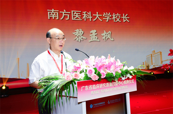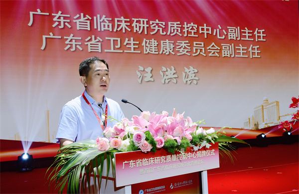 ▲ 广东省临床研究质控中心执行主任、南方医科大学珠江医院院长郭洪波教授主持揭牌仪式