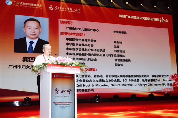 ▲ 广州市妇女儿童医疗中心党委副书记龚四堂作《利用医学大数据开展临床研究》报告