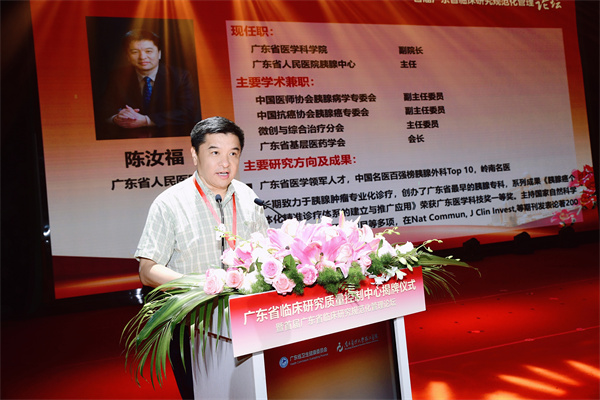 ▲ 广东省人民医院副院长陈汝福作《开展高质量临床研究》报告