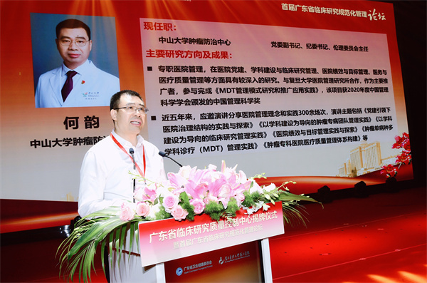 ▲ 中山大学肿瘤防治中心党委副书记何韵作《临床研究推动学科发展》报告
