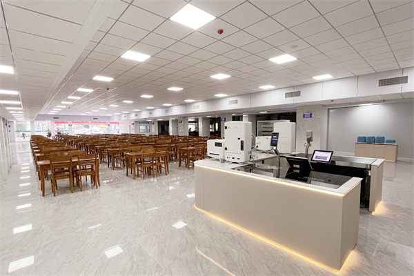 新增餐厅就餐面积约500平方米,环境宽敞明亮、配套完善,用餐更加舒适、便捷。新的智慧结算系统,通过智慧化结算设备,大幅度提高结算通过率、准确率,实现“刷脸用餐”、手机员工号自助充值等一体化功能。