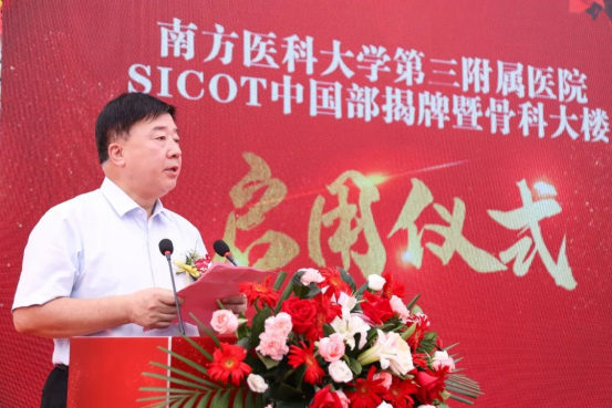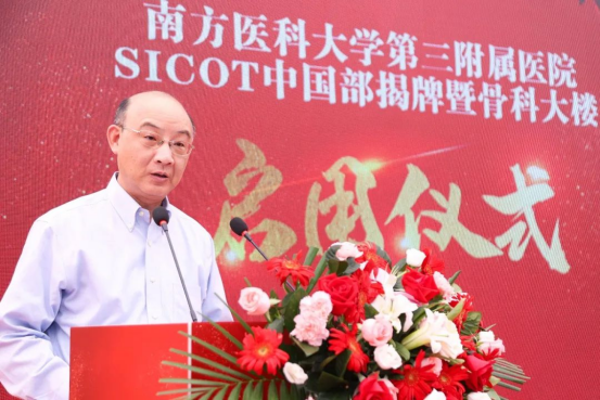 中国工程院院士、SICOT中国部名誉主席、中华医学会骨科学分会主任委员张英泽,原广东省政协副主席徐尚武,原广州市人大常委会主任、党组书记张桂芳,南方医科大学校长黎孟枫,广东省卫健委二级巡视员陈砺,南方医科大学副校长熊梦辉,广州市天河区政府副区长袁笑一,广州市卫健委党组成员、市民营医疗行业党委专职副书记王国斌,广东省医师协会副会长吴少林,广东省医院协会副秘书长潘晓雷,SICOT中国部主席金大地,广州市和天河区相关领导,大学机关、各学院、兄弟医院等领导出席了SICOT中国部揭牌暨骨科大楼启用仪式。中国工程院院士、SICOT中国部终身名誉主席邱贵兴院士发来视频以表祝贺。活动由医院党委书记许明辉主持。