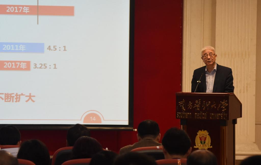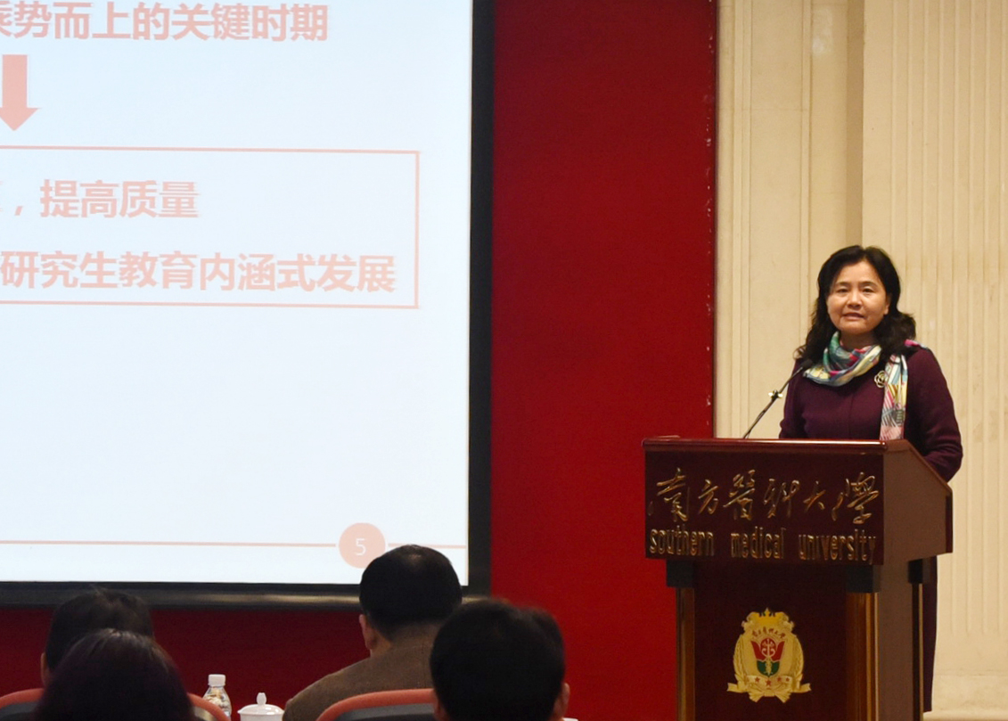 副校长高天明作了《南方医科大学学位与研究生教育现状》报告,以详实客观的数据回顾总结了2011年以来学校学位与研究生教育取得的成绩,客观到位地分析了当前学位研究生教育改革与发展面临的问题,并对问题原因进行深入的阐述。