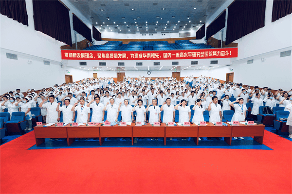 在《走向复兴》的音乐声中,全体院领导为新入职医师代表授予白大衣,为新入职护士代表授予护士帽,与大家进行简短热切的交谈,寄予深切关怀与深厚期望。