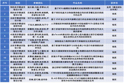 8月25日-28日,由高等学校国家级实验教学示范中心联席会基础医学组及下属的高等学校基础医学创新创业协同育人工作组主办,陆军军医大学承办的第九届全国大学生基础医学创新研究暨实验设计论坛总决赛上,我校共有14个项目晋级全国总决赛,最终斩获1金6银7铜的成绩,获奖总数创历史新高,并获高校优秀组织奖,凸显我校创新人才培养的整体实力,展示了我校学子在基础医学、临床医学、预防医学、法医学、口腔医学、中医药学等领域的创新意识与创新能力以及我校以新医科统领医学教育创新发展的成果,表明我校在贯彻落实以学生为中心、注重素质培养的教育理念、培养医学拔尖创新人才方面开创新的格局。