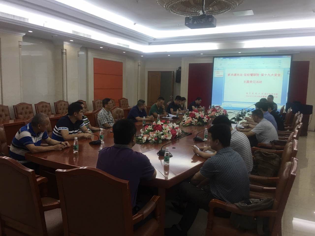 7月17日,保卫处党支部与京溪派出所党支部“抓共建共治,促校警联防,保十九大安全”支部“1+1”共建主题党日活动在学校秋水堂月色厅举行,保卫处全体党员和京溪派出所所领导及有关民警共约30人参加了会议。