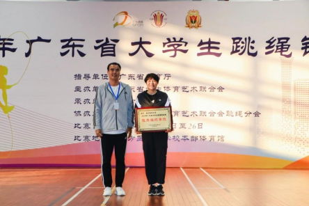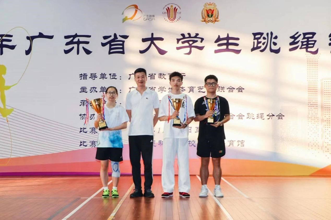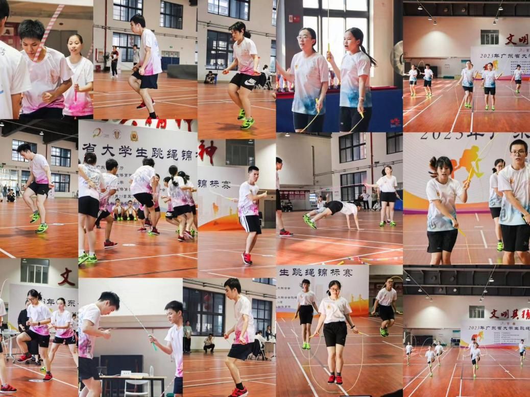 11月25日,活力绽放,“绳”彩飞扬,由广东省学生体育艺术联合会主办的2023年广东省大学生跳绳锦标赛在我校体育馆举行。本次比赛共有速度、接力、花样等17个项目。我校与中山大学、广州大学等多所高校队伍同台竞技,通过激烈比拼,跳绳队打破往年的纪录,最终收获7金7银1铜,荣获普通高校组团体总分第一名。