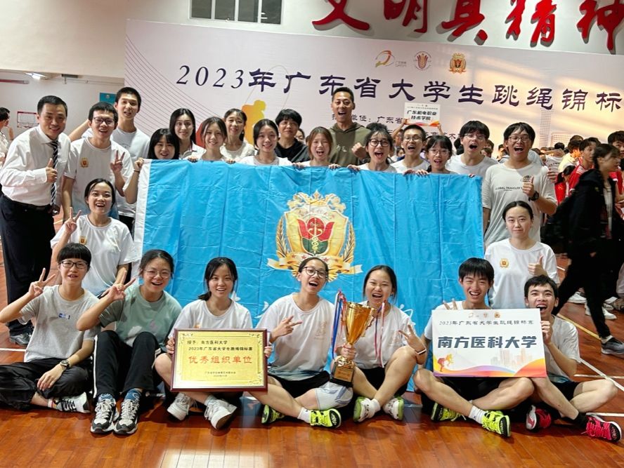 “2023年广东省大学生跳绳锦标赛”由我校承办,这是我校第一次承办省级体育赛事。比赛流程顺畅,现场氛围热烈,组织工作得到了广东省学生体育艺术联合会的高度认可。广东省学生体育艺术联合会跳绳分会副会长温克健先生为南方医科大学颁发了“优秀组织单位奖”。