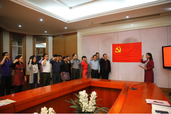最后,教务处全体党员面对党旗,在余艳红的领誓下,重温了入党誓词。