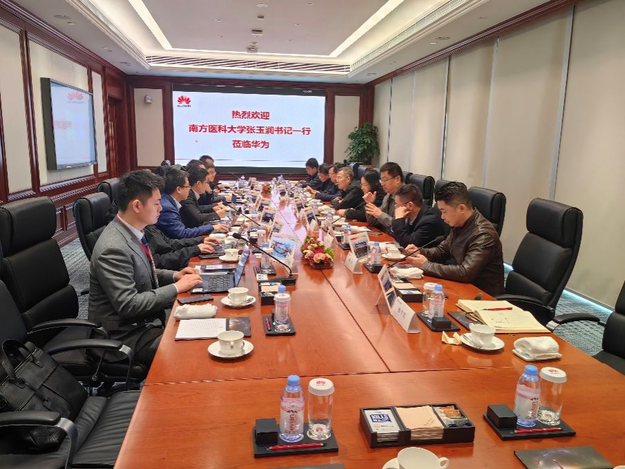 张玉润一行到华为技术有限公司参观了华为云普朗克展厅并召开座谈会,相关单位负责人围绕数字化转型、健康大数据研究、智慧校园建设等方面进行了深入研讨,并达成友好合作共识。