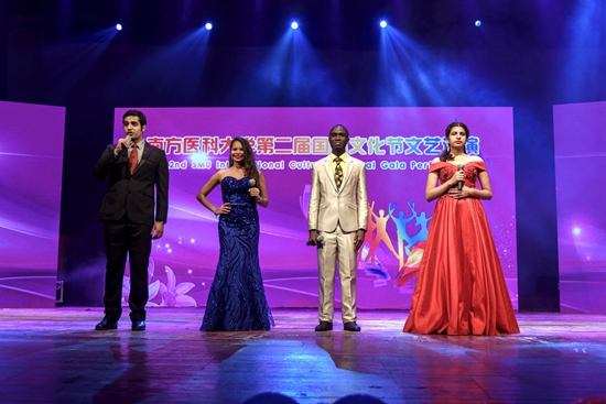 晚上7点30分,本届国际文化节的重头戏-文艺汇演在校本部礼堂隆重举行。来自不同国家、不同地区的南医留学生们齐聚现场,以各具风情特色的歌舞表演为大家献上了一场国际文化交流的盛宴。