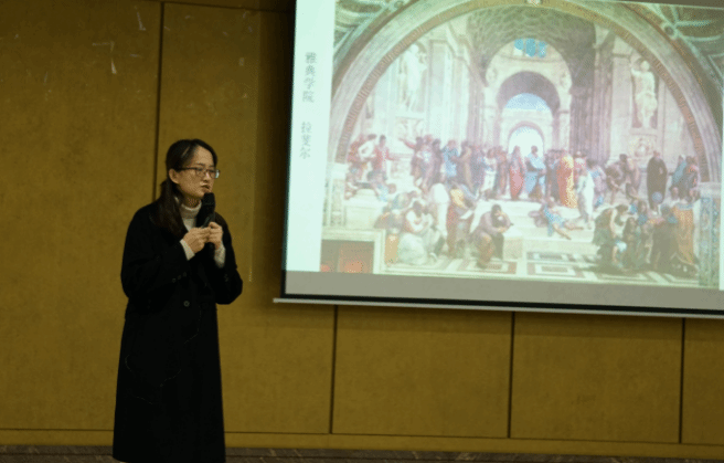 最后,张明慧以毕达哥拉斯发现的黄金分割比例和单点透视法为例,与同学们一起探讨了数学与艺术之间千丝万缕的联系。