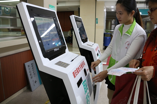 患者在自动报到机上,扫描处方单或输入ID号即可实现报到。
