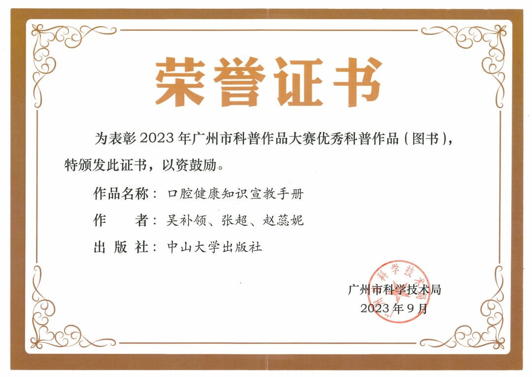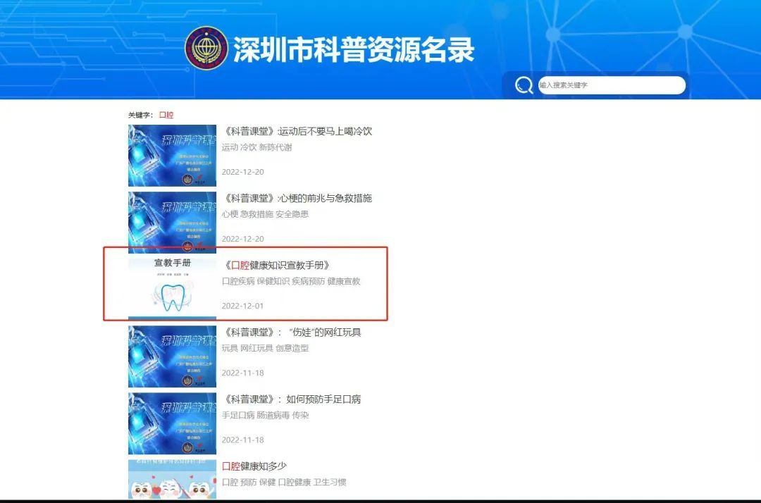 近日,深圳口腔医院编著的《口腔健康知识宣教手册》上架了。本书荣获2023年全国优秀科普作品、2023年广州市优秀科普作品,同时入选深圳市科普资源名录。