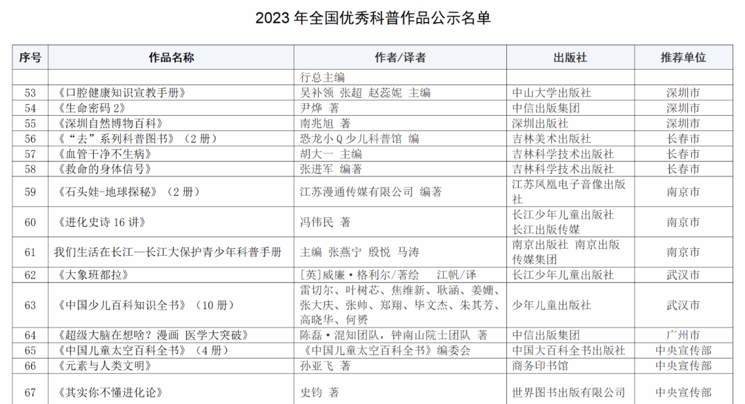 2023年8月,经深圳市科学技术协会推荐,参加由科技部组织开展的2023年全国优秀科普作品推荐活动。经形式审查、网络评审和会议评审,获得2023年全国优秀科普作品。