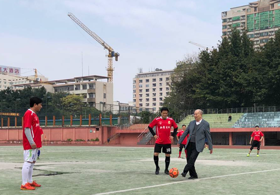 1月1日,学校元旦“贺岁杯”师生足球友谊赛在校本部体育场举行。钟世镇院士作为特邀嘉宾为比赛开球,并与全体参赛教职工和学生合影留念。