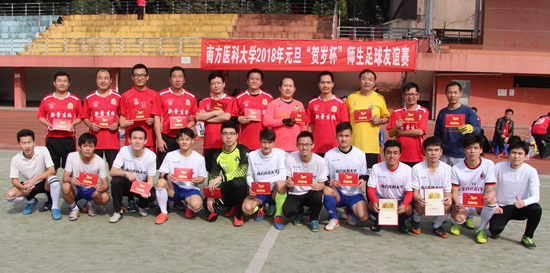 本次比赛由校工会、校团委联合主办,教职工足球俱乐部和校学生会具体承办,比赛旨在增进教师与学生交流与互动,营造健康活泼校园文化氛围,共同以崭新精神风貌迎接2018新年到来。比赛开始前,教职工与学生互换新年贺卡,相互送上美好的新年祝福。经过上、下半场90多分钟的比赛,最终学生联队以4:2比分战胜教工联队,连续3年蝉联“贺岁杯”冠军。