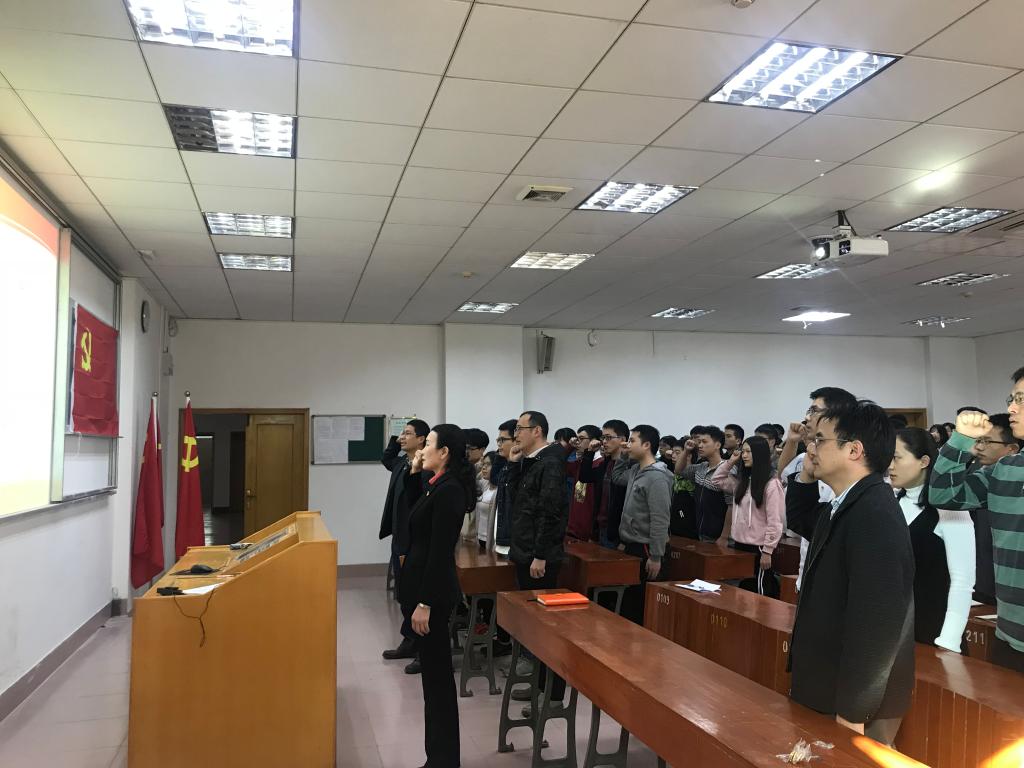 新党员入党宣誓、老党员重温入党誓词由学院党委书记何沐蓉主持,学院党委班子成员,教工、学生正式党员,预备党员及入党积极分子近百人参加了活动。入党宣誓仪式在雄伟庄严的国际歌中拉开帷幕。学院党委委员、副院长游文玮宣读了2017年33名教工、学生预备党员名单。