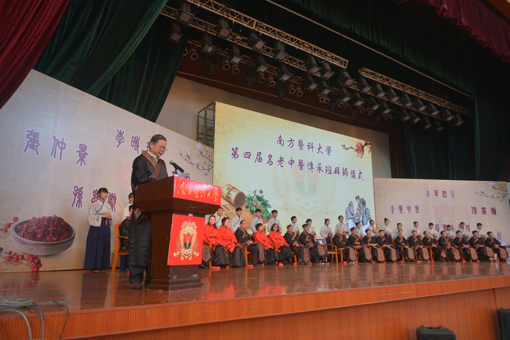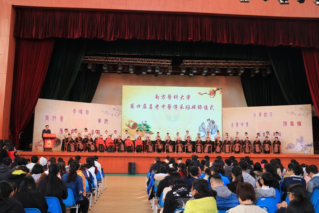 1月12日下午,中医药学院第四届名老中医传承班拜师仪式在顺德校区综合馆举行。