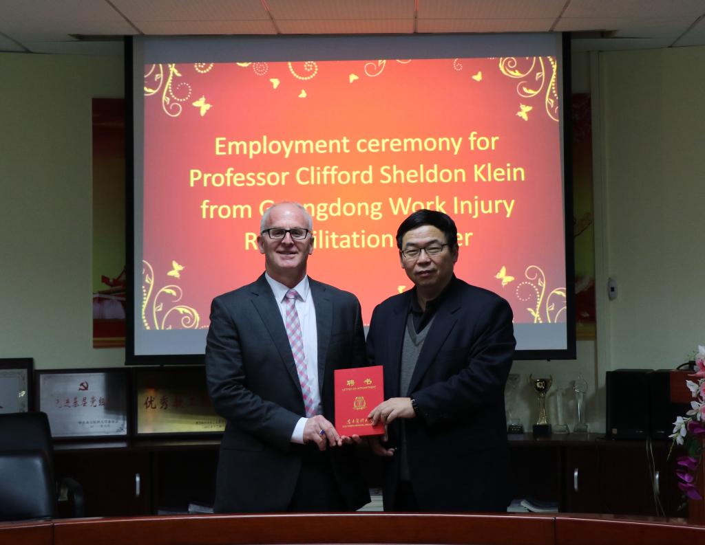 1月9日和1月16日下午,香港中文大学王德峰、广东省工伤康复医院康复研究所研究员Clifford S.Klein受聘为我校人体解剖学与组织胚胎学客座教授。副校长文民刚为他们颁发了聘书。学校教务处、基础医学院领导出席了受聘仪式。
