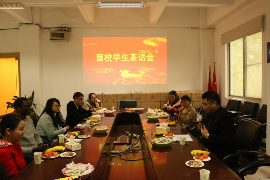 随后,留校学生茶话会在学生处会议室召开,参与人员由各学院学生代表、少数民族学生代表、外国留学生代表、值班辅导员老师代表组成,师生代表踊跃发言,分享了各自的工作、学习和生活情况,以及春节留校期间的计划。