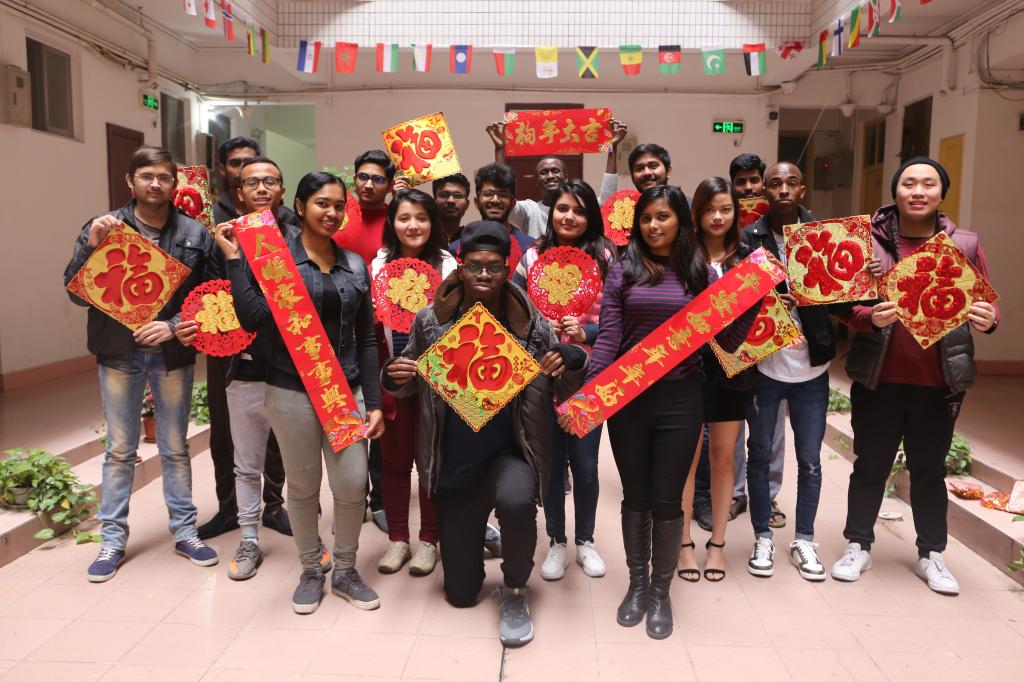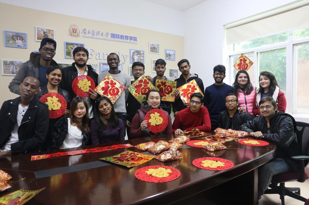 据悉,今年我校大约有三百来名来华留学生由于离家遥远、复习考试、毕业实习等原因在寒假期间留在学校。我校将春节等中国传统节日作为广大来华留学生了解中国文化的窗口,积极组织文化体验活动,留学生们尝特色美食、贴对联,了解守岁、逛花市等民间习俗,感受中国百姓对于社会、家庭和生活的美好期许。