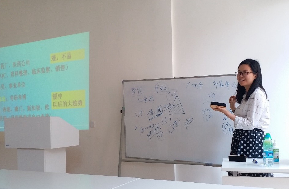 兼职辅导员曹惠慧给同学们分享科研经验,为大家解答在专业学习上的困惑,同时分析中药学与中药制药专业的职业发展现状,以及两个专业关于升学与科研的路径发展。