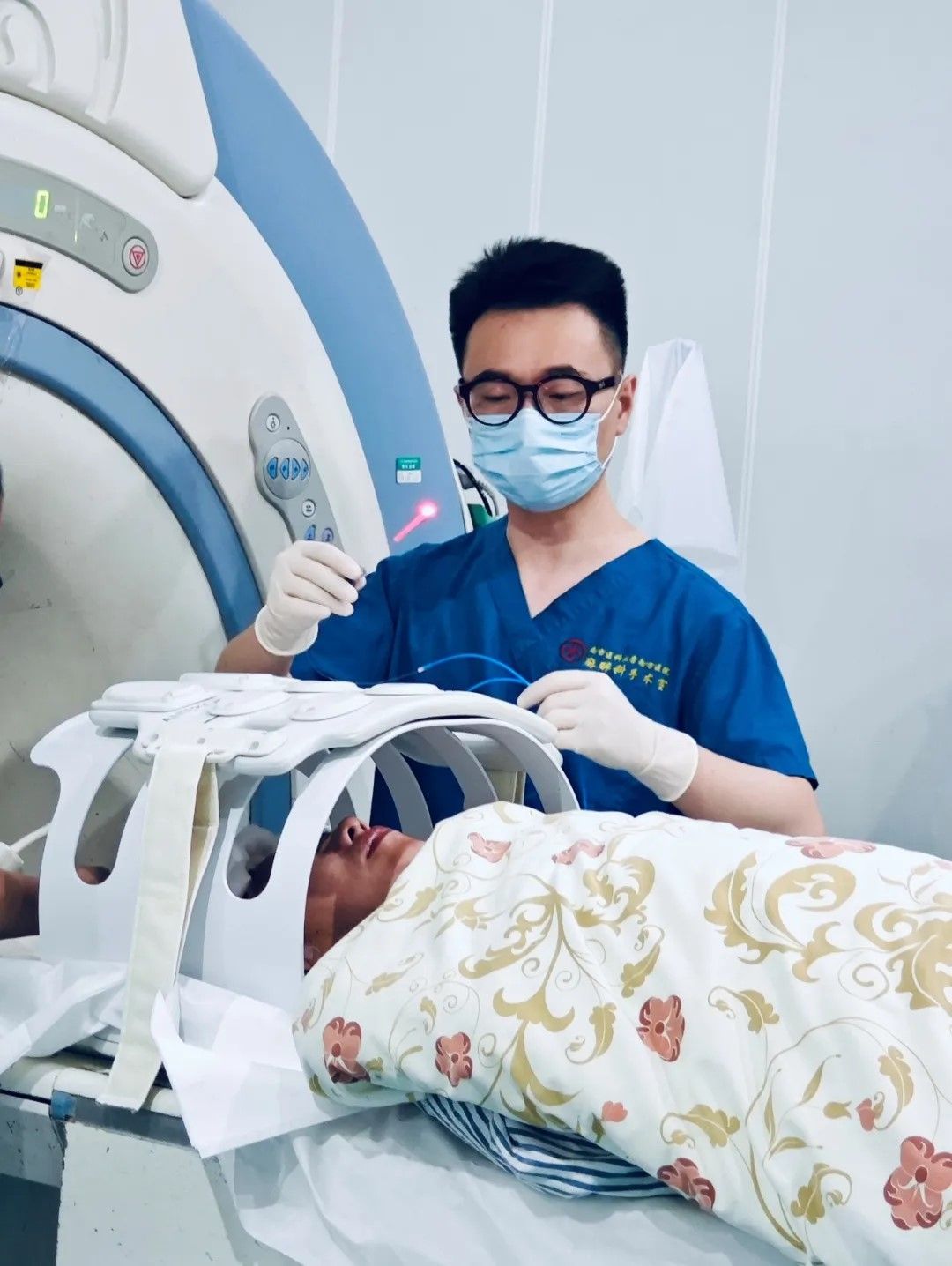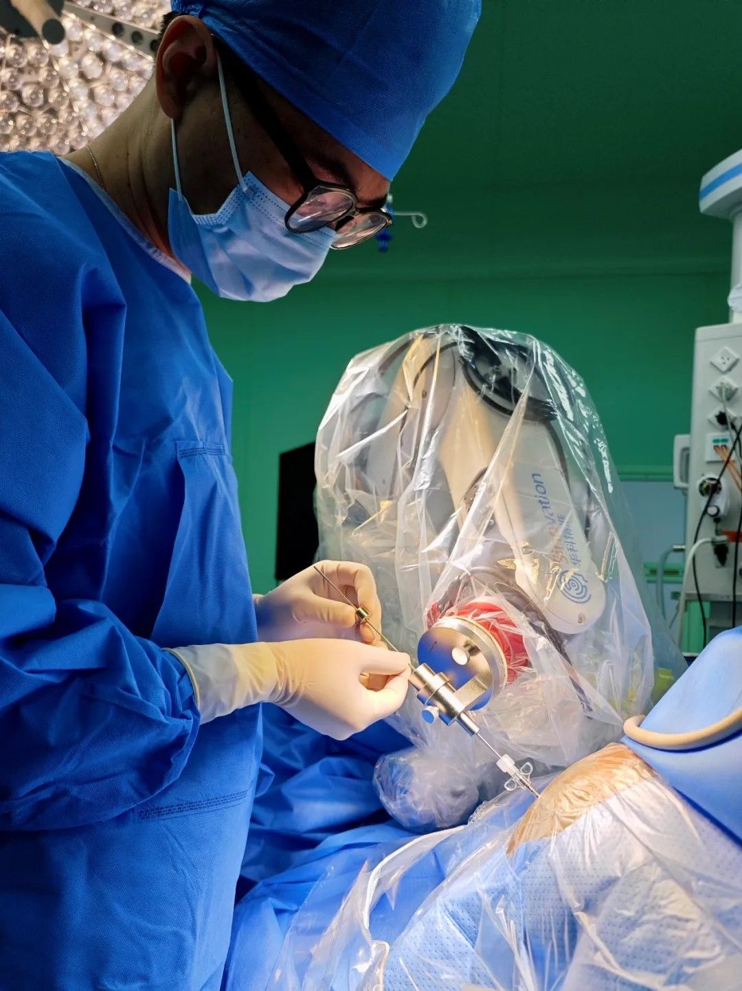 龙浩教授团队为患者行机器人辅助激光光纤植入术