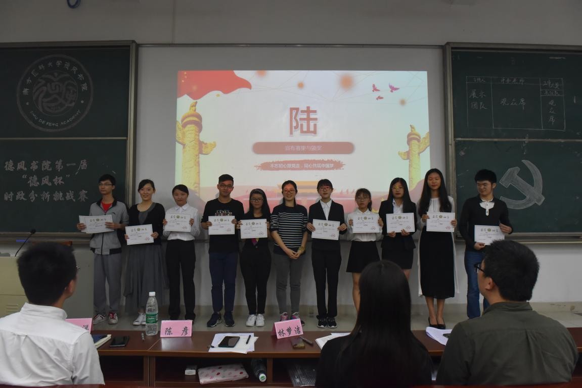 以赛促学,以奖激学,本次时政分析挑战赛是德风书院开展思想政治教育内容与形式的创新,既深化了德风学子对十九大及两会精神的理解和把握,又强化了当代青年学生的责任与担当意识。高校思想政治教育伴随中国特色社会主义进入新时代而迈入新征程,应因事而化、因时而进、因势而新,开展学生喜闻乐见的思政教育活动,切实肩负起新时代赋予的新使命。