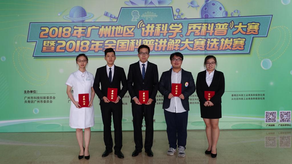近日,2018年广州地区“讲科学、秀科普”大赛暨2018年全国科普讲解大赛选拔赛结果揭晓,我校又添五位“广州市优秀科普使者”。
