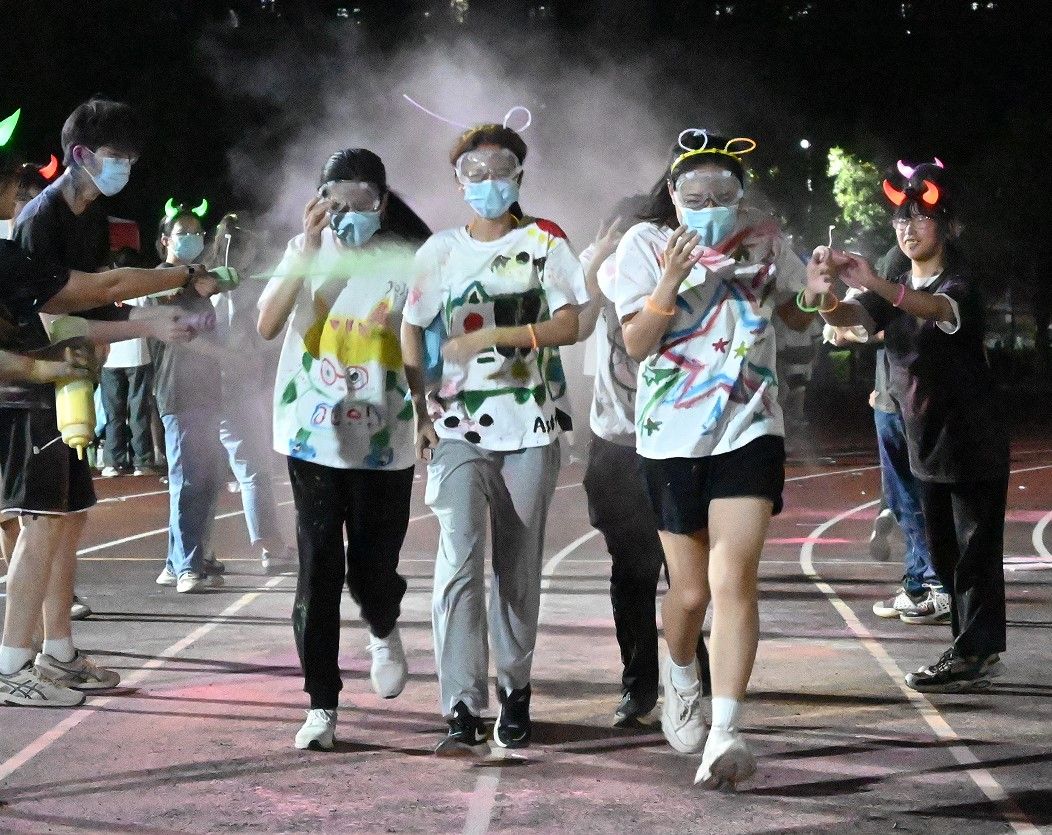 线下活动主要是知识挑战赛及荧光夜跑。知识挑战赛在体育活动中融入思政元素,通过“五四我知道”、“金句连连看”、“乒乓见历史”、“集邮庆华诞”等学生喜闻乐见的形式,让思想政治教育“动起来、活起来、热起来”,也让学生在理论学习中“文明精神”、在体育运动中“野蛮体魄”。