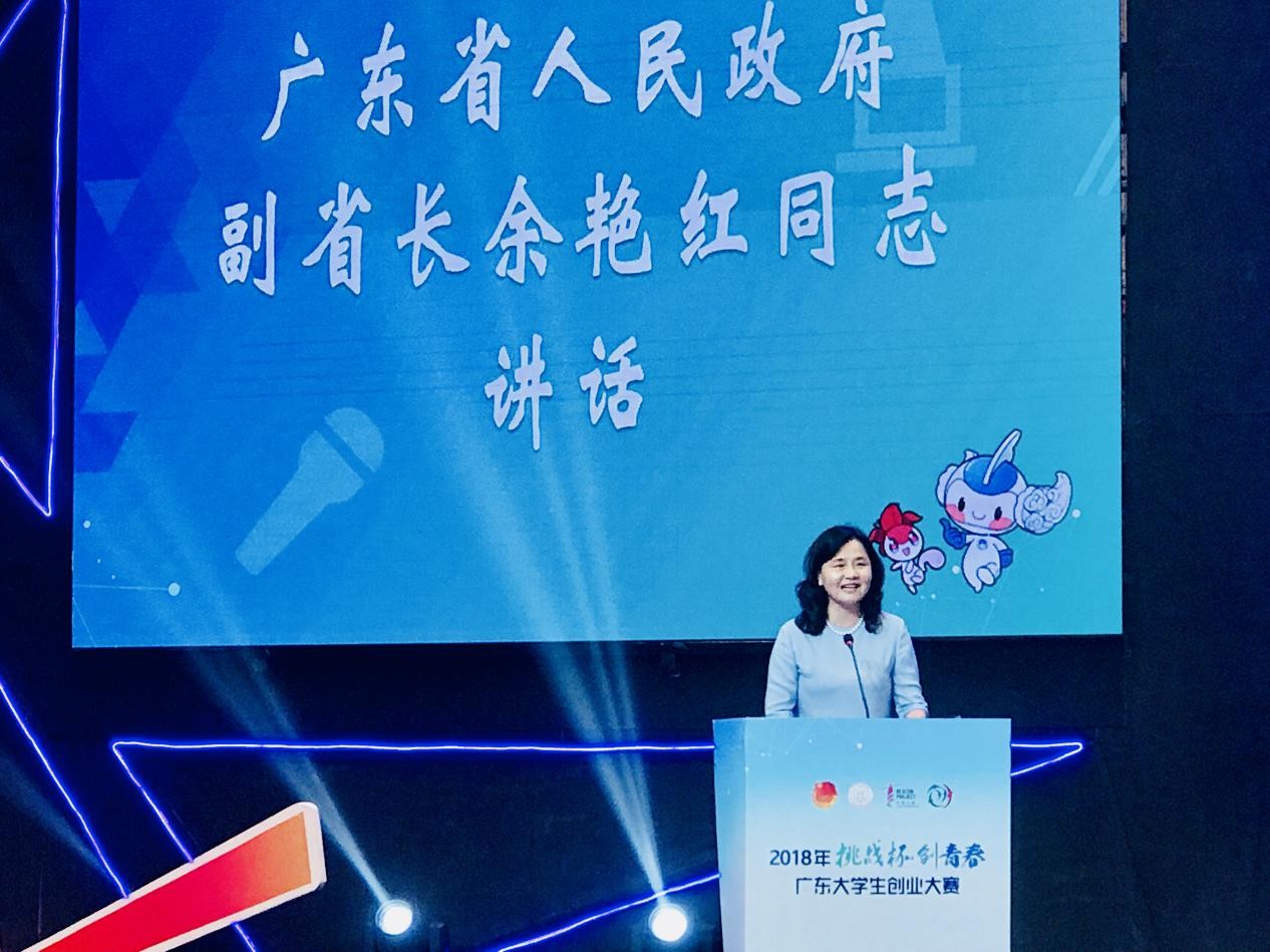 开幕式上,副省长余艳红指出,要深入学习宣传贯彻习近平新时代中国特色社会主义思想和党的十九大精神,高度重视、大力支持青年创新创业,不断完善扶持青年创新创业各项政策,持续加大“攀登计划”广东大学生科技创新培育专项资金投入,持续做好大学生创新创业示范校建设,加大力度支持大学生到粤东西北地区就业创业。各级共青团组织、高校以及社会各界要继续关心和支持青年创新创业,共同营造“大众创业、万众创新”的良好氛围,打牢青年创新创业的社会基础。广大青年大学生要胸怀家国立大志,矢志艰苦奋斗、创新创业,努力成为创新驱动发展的生力军;要紧跟时代抓机遇,善于发现机遇、抢抓机遇,努力在创业创新道路上走出特色;要不懈奋斗做实事,夯实根基、脚踏实地、攻坚克难、久久为功,争当新时代的实干家,用创业奋斗的实践写就精彩人生。