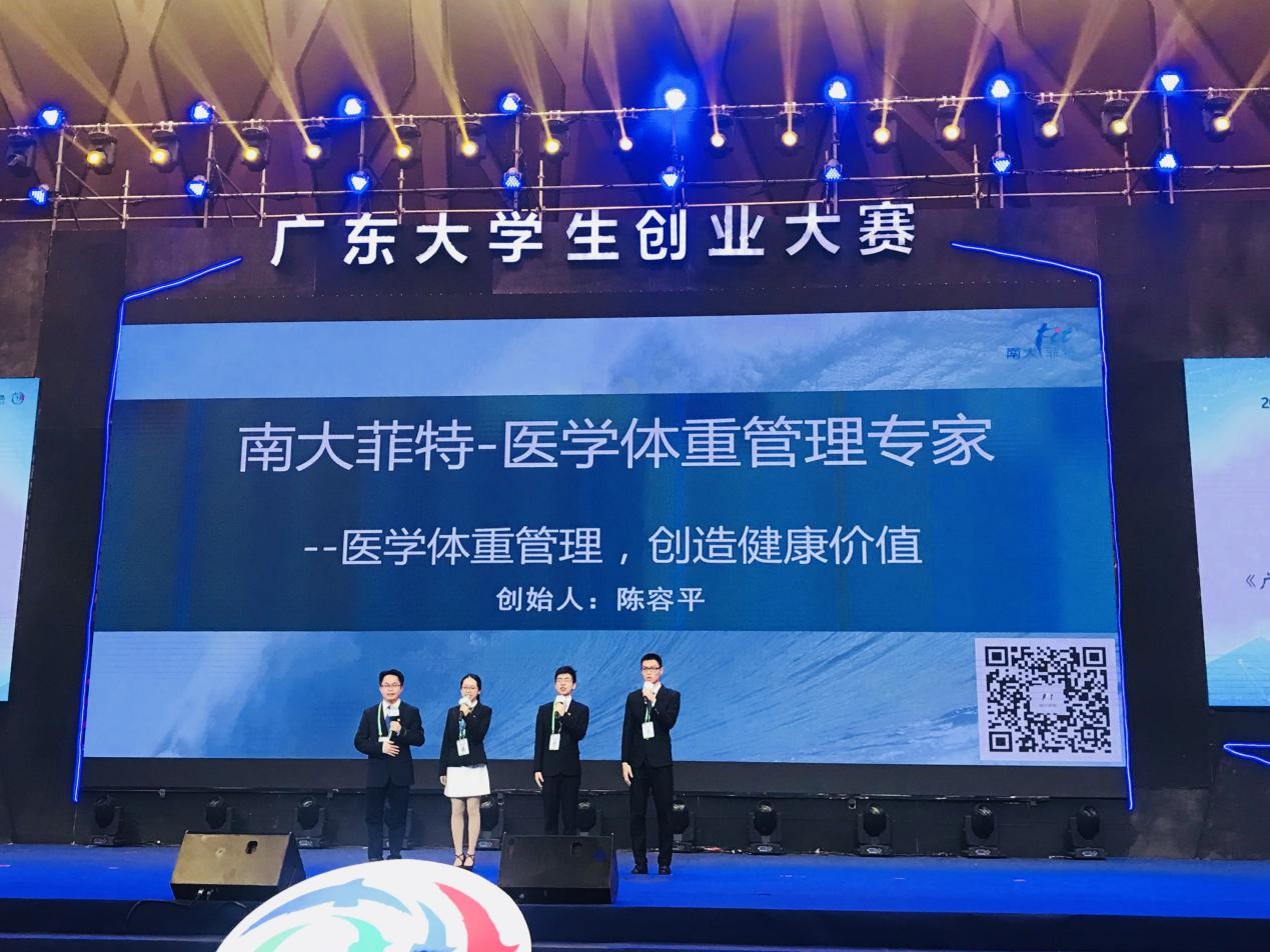 经过秘密答辩,我校5个项目荣获金奖,分别是《广州云图闪阅医疗科技有限公司》、《广州微普生物科技有限公司》、《广州棋士医疗科技有限公司》、《广州南逸堂科技应用有限公司》、《南大菲特——医学体重管理专家》。我校南大菲特团队作为唯一的创业实践赛优秀项目,在闭幕式上进行了公开答辩,并得到了本届竞赛评委会主任彭星国的高度评价和积极推荐。