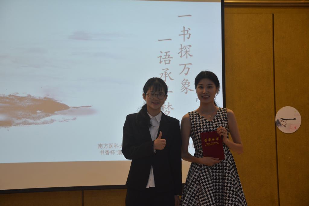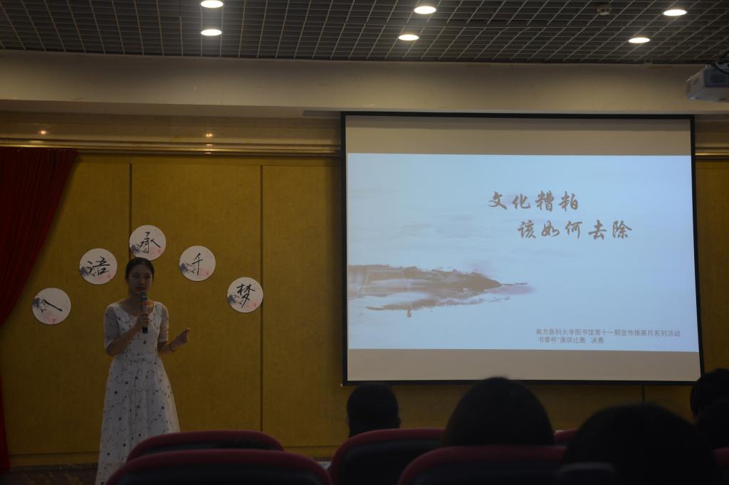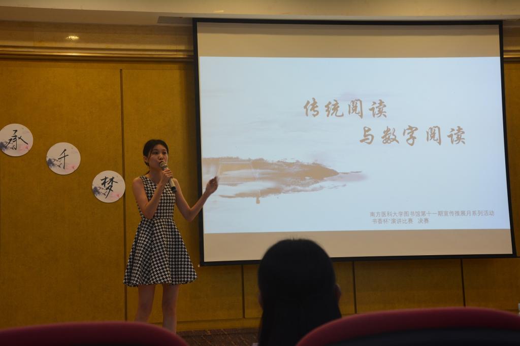 近日,由图书馆主办、图书馆志愿服务协会承办的“一语承千梦,一书探万象”第八届“书香杯”演讲比赛在顺德校区国际会议厅举行。检验与生物技术学院2016级霍艺杰夺得第一名并获得最佳台风奖,中医药学院2016级王治晧和药学院2017级龙璐分获第二、三名。