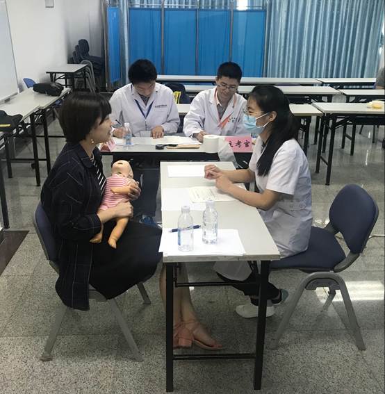 技能考试采用多站式考试(OSCE),考试基地设在第一临床医学院临床技能中心。此次考试共设置平行考组6组,每组6个考站,分别考查病史采集、体格检查和临床基本操作能力,同时对学生的沟通能力与人文关怀进行评价。其中病史采集站采用标准化病人(SP)面谈模式,并启用标准化病人参与考生评分。