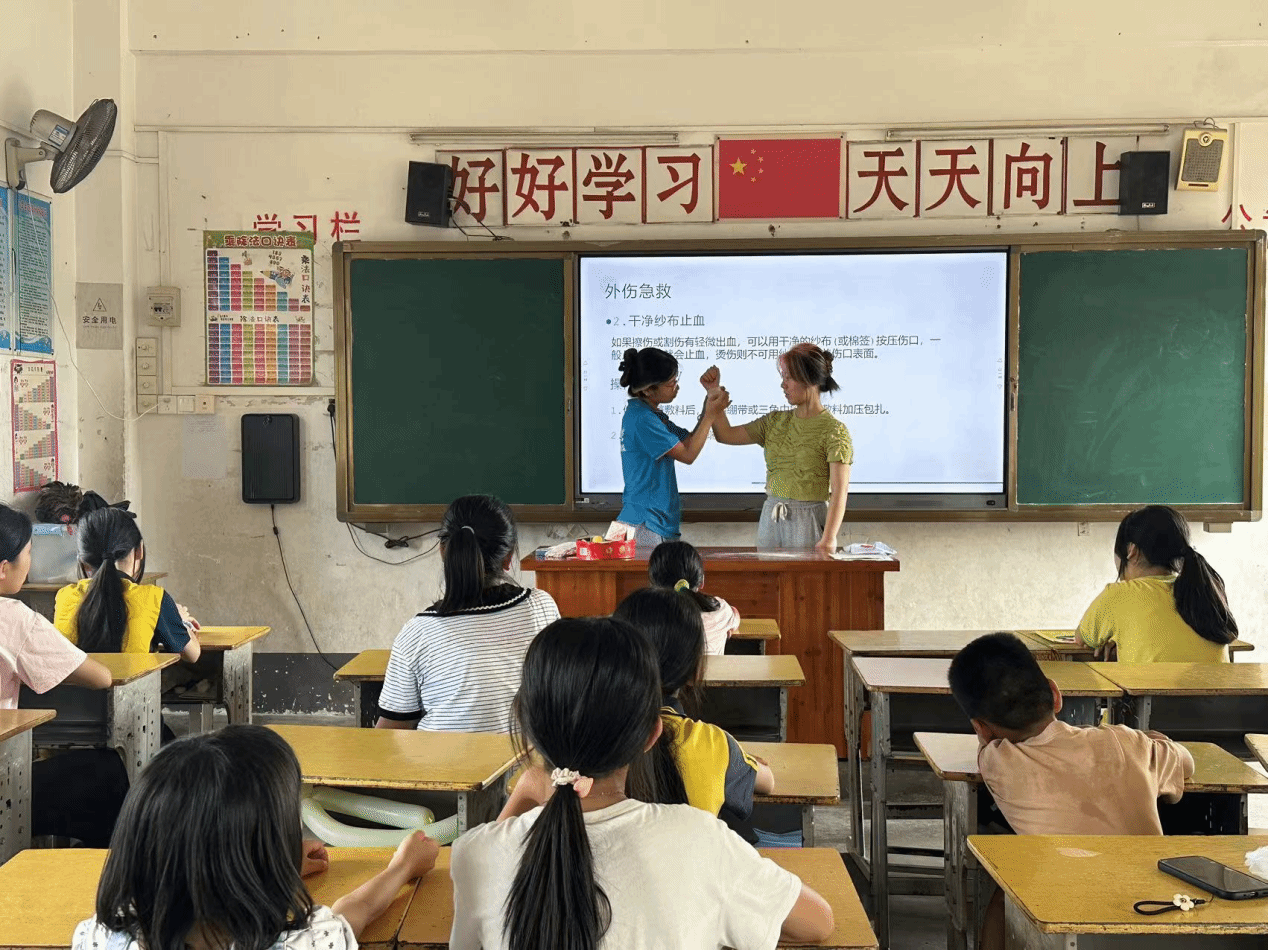 在此次支教活动中,支教队精心策划了系列丰富多彩且寓教于乐的课程与活动。支教不再局限于传统的知识传授,更致力于点燃孩子们内心对学习的热情与探索未知世界的渴望。在科普课程方面,支教队创新性地融入了皮格马利翁效应的奇妙探索、急救知识的生动普及、引人入胜的物理小实验、关乎健康的食品安全讲座,以及深入浅出的睡眠过程科普。