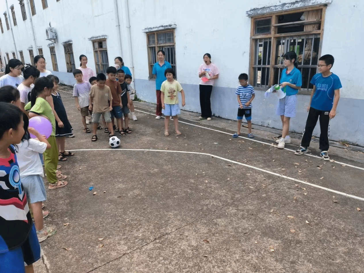 除了课堂上的学习,在课下支教队也精心策划了一场别开生面的趣味运动会,投入到各项比赛中,无论是经典传统的羽毛球对决与跳绳比赛,还是创意无限的“环保”保龄球挑战、灵活多变的踢毽子比赛,以及考验技巧与团队协作的乒乓球运球接力,每一个项目都激发了孩子们浓厚的兴趣与参与热情。这场趣味运动会,不仅让孩子们在轻松愉快的氛围中锻炼了身体,更在无形中增强了他们的团队协作能力、竞争意识以及同学之间的深厚情谊。
