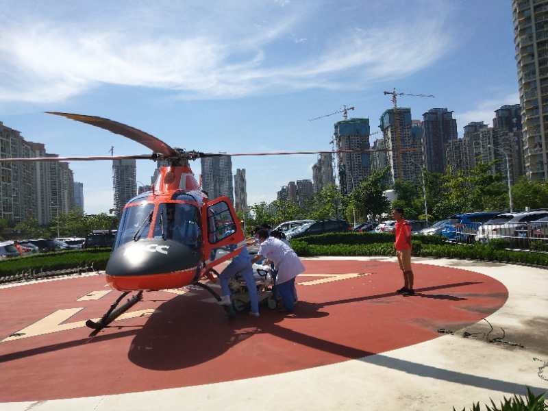 自2017年5月27日启动航空救援以来,深圳医院已构建了地、空相连的120体系,形成系统、流畅的航空救援绿色通道,建成一支专业化的航空医疗救护人员队伍,医院与金汇空中救援有限公司建立合作关系,医院建有独立停机坪,金汇空中救援有限公司配备直升机和机组人员常驻于此,随时准备救援。在此之前已进行过2例直升机航空救援,包括全国第一例直升机ECMO体外生命支持的跨地区空中转运。